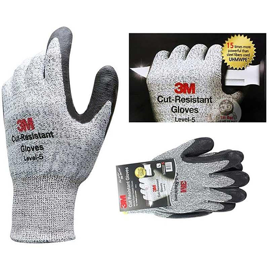 Găng Tay Chống Cắt 3M 3 Cấp Độ (Level 1, level 3, level 5) với chất liệu HPPE Spadex cho cảm giác vừa vặn và cực kỳ thoải mái.